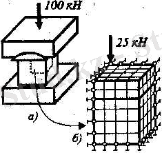 Егер құрылымның симметрияның осьтері немесе жазықтары болса, онда шекаралық жағдайларды тағайындау кезінде оны ескеру қажет. Осылайша, мысалы, қатты пуанссондары бар анағұрлым жұмсақ біртекті материалдан жасалған кубты қысатын пресс симметрияның үш жазықтығына ие болады. Бұл жағдайда, құрылымды тұтастай үлгілеудің қажеттілігі жоқ екендігі белгілі. Симметрия жазықтықтарындағы нүктелер де сәйкес ығысулар нөлге тең екендігін ескеріп, үлгілеудің бөліктерін ғана үлгілеуге болады (1/4 немесе 1/8) . Бұл жағдайды, симметрия жазықтықтарында жататын элементтердің түйіндерінде сәйкес шекаралық жағдайлармен ескеру керек. (2. 21, б-Сурет)