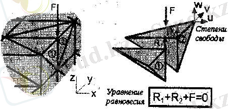 Шектелген-элементтік есептерде түйіндердегі ауысулар белгісіз екендігін, сондай-ақ үшөлшемді есептерде тетрогональді элементтің әрбір түйінінде үш бағыт бойынша ауысуы мүмкін екендігін (2. 2-Сурет) есептеп, матрица түрінде жазылған тепе-теңдік теңдеулерінің жүйесі 1 жететін және одан асатын өлшемге ие болуы мүмкін. Алайда, қазіргі кездегі ЭЕМ (ЭВМ) үшін осындай теңдеулер жүйелерінің шешімі толығымен оңай есептеледі. Тепе-теңдік теңдеулерін құрған кезде, координаттық осьтердің әрқайсысына барлық күштер проекциясының сомасы нөлге тең екендігі, ал ішкі күштердің сомасы кері таңбасы бар сыртқы күшке тең екендігі ескеріледі.