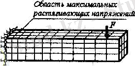 Келесі жағдайды қарастырайық. Тым үлкен созылатын кернеулер көптеген бұзылулардың негізгі себебі болып саналатындығы белгілі. Бұл жағдайда, егер максималды созылатын кернеулердің аумағы күштің салыну нүктесінен алысрақ орналасса (мысалы, 2. 23-Сурет сұлбасындағыдай) осы нүктенін қасынан элементтердің егжей тегжейлі торын құрудың қажеттіліг жоқ, өйткені осында негізінен қысатын кернеулер әрекет етсе.