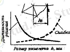 Анығы, шектелген элементтің өлшемі қаншалықты кіші болса (h) (2. 10-Сурет) үлгідегі элементтер саны сол ғұрлым көп көп болады, бұл орайда есептеудің уақыты анағұрлым үлкейеді, ал талдаудың қателіктері азаяды. Алайда, қателер нөлге дейін кішіреймейді, өйткені элементтер санының көбеюі мен ЭЕМ-ғы (ЭВМ) дөңгелектеу қателіктері көбейеді.