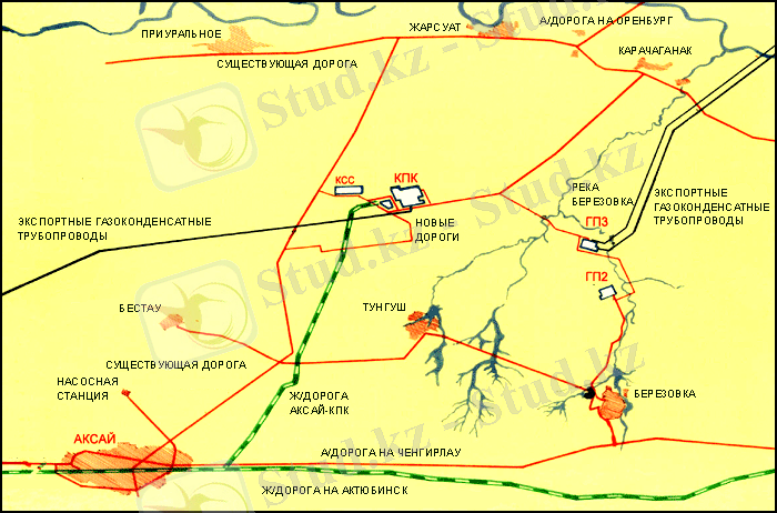 Қарашығанақ МГККО Батыс - Қазақстан облысының батысында, Бөрлі ауданының территориясында орналасқан. Аудан климаты континентальды. Температура қыста -40 0 С-қа дейін жазда +40 0 С арасында тербеліп тұрады. Оңтүстік - шығыс және солтүстік - батыс бағытындағы желдер басым. Орташа жылдық жауын - шашын мөлшері 300 - 350 мм. Облыстың топырақ жамылғысы оңтүстік қаратопырақтармен, қара-қоңыр, ашық-қоңыр және қоңырлау түсті топырақтармен берілген. Орал өзенінің жайылымында жайылымдық топырақтар дамыған. Олар жайылым суастында қалған кезде түзіледі. Өсімдік жамылғысы бойынша ауданда далалық және шөлді-далалық аймақтарға бөледі. Кен орыннан Оралға дейінгі арақашықтық 160 км., Орынборға дейін 155 км., ОГӨЗ дейін 158 км. ОГӨЗ дейінгі газ құбырларының орташа ұзындығы 140 км. Ең жақын тұрғылықты пункттар: Қарашығанақ ауылы 10 км., Тұңғыш ауылы 2 км., Березовка ауылы 3 км. (1. 1-сурет) .