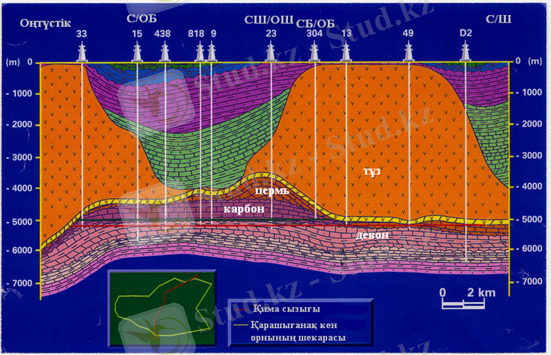 1. 2-сурет. Қарашығанақ кенорнының геологиялақ қимасының сұлбасы