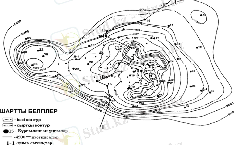 1. 3-сурет. Қарашығанақ кен орнының өнімді комплекстің жабыны бойынша структуралық картасы