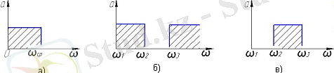 а) жоғары жиіліктерді өткізетін және төмен жиіліктерді өткізбейтін жоғарғы (ал жоғары емес) жиілікті фильтр (ЖЖФ) ; б) тек жиілік жолағын өткізетін жолақты фильтрлер (ЖФ) ; в) тек жиілік жолағын өткізбейтін режекторлы немесе басып тастайтын (РФ немесе КФ) фильтрлер