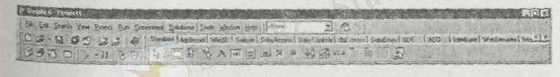 Негізгі терезеде Dеlрһі-дің негізгі менюі, пиктографиялық батырмалар және компоненттер палитрасы орналасқан. Негізгі мәзірде Dеlрһі функцияларын іске қосу бұйрықтарының жиынтығы бар.
