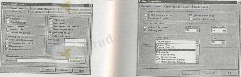 Егер түсініктемелерді орыс тілінде қолданғыңыз келсе, оған сәйкес шрифт таңдау қажет (код бағдарламасын бейнелеу үшін) . Үнсіз келісім бойынша Delphi -де Courier New шрифті қолданылады, бірақ онда кириллица символдары болмауы мүмкін. Сондықтан Displey парағын таңдап, Editor Font қатарында Courier New Cur шрифтін орнатыңыз (8-сурет) .