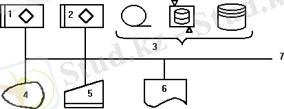 1-микропроцессор, 2-негізгі жады, 3-сыртқы жады, 4-дисплей, 5-клавиатура, 6-басып шығару ќұрылғысы, 7-жүйелік магистраль.