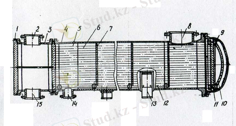 1. 1. 5 - суретте ТП типті қаптама құбырлы жылуалмастырғыш көрсетілген. Жылу алмастырғыш қаптамадан 5, шоғырланған құбырлардан 6 және екі құбырлы тормен 4 және 11 тұрады.