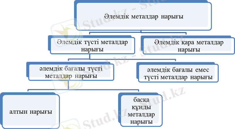 Жоғарыда айтып кеткенге қарағанда алтынның жалпы әлемдік металлдар нарығындағы орнын келесі 1 суреттегідей анықтауға болады