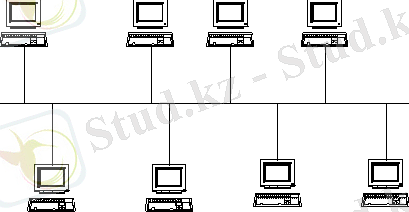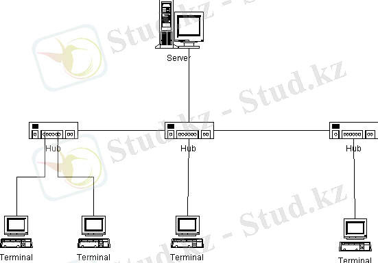 жұлдызды (star) - орталық түйіннен басқа барлық түйіндерге байланыс желілері тартылған;