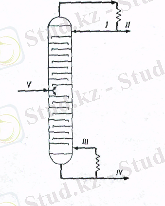 I - сулық суландыру; II - ректификат; III - ағынды ыстық айналдыру; IV - қалдық; V - шикізат.