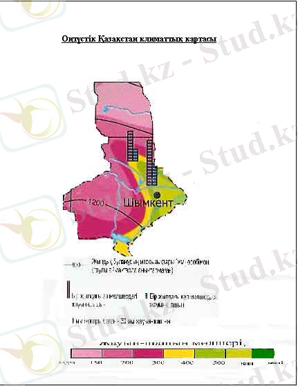 Қыста бұл ауа массалары жылылық әкелген, сірескен мұздар еріп сай-салаға тасқын болып аққан. Жерорта теңізі мен Қара теңізден қаныққан ау массалары оңтүстік батыстан келе бастаған. Сөйтіп боранды-бұрқасын қалыптассып, қар күйінде кейде жаңбыр күйінде түсіп отырады, кейде қарға айналады. Атлант мұхитынын келетін ауа массалары Оңтүстік Қазақстан облысына қаныққан ауа массаларын айдап әкеледі де, жауын-шашын көп жауады. Тау етектеріндегі жазықтарға 350мм -дей жауын-шашын түседі, ол тау белдеулеріне одан көп ылғал қалдырады, оның мөлшері 400-500 мм болады.