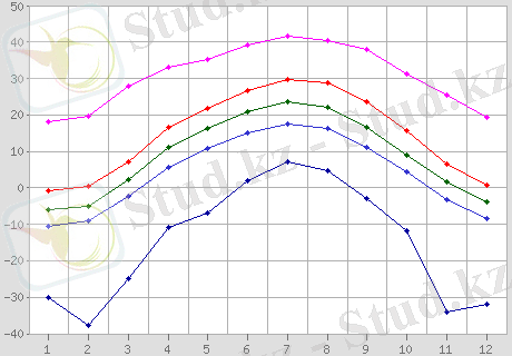 Кесте 1 Температураның орташа айлық, жылдық және экстримальды мәндері мен ауаның салыстырмалы ылғалдылығы