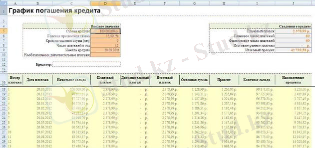 Мысалы, Уақытын созу шаблонын таңдап, несие бойынша айлық төлемдердің ыңғайлы аспабын алуға болады.