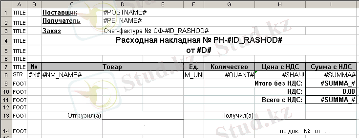 Жоғарыда көрсетілген шаблонды қолдана отырып, берілген форматтағы жөнелтпе құжатты эксельге шығаратын процедураны толығымен келтірейік: