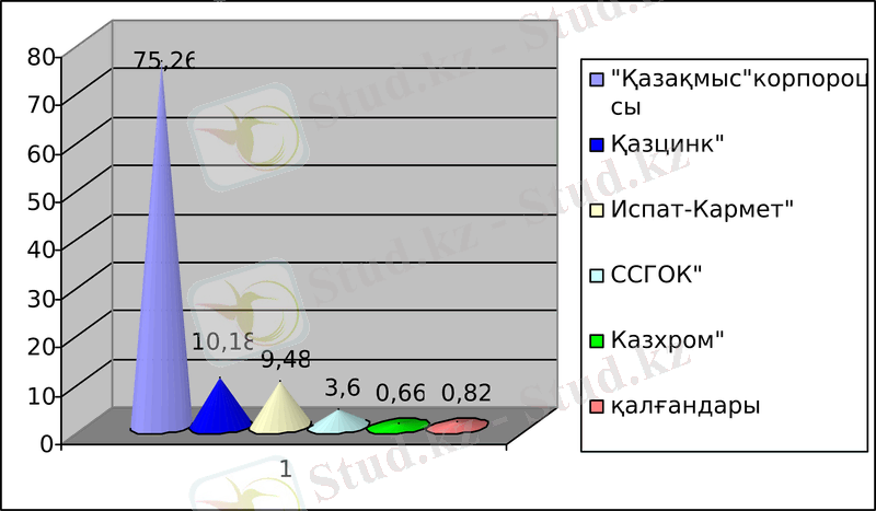 1-сурет. Тау-кен металлургия кешенінің экологиялық шығынға қосатын үлесі, қатты ластағыш заттар бойынша