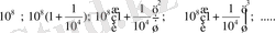 гометриялық прогрессиялардың мәндеріне (k - 0, 1, 2, 3, …) Бюрги 0, 10, 20, 30, … арифметикалық прогрессиялар мәндерін сәйкес қояды. Сонда мәндердің екі тізбегі келіп шығады: