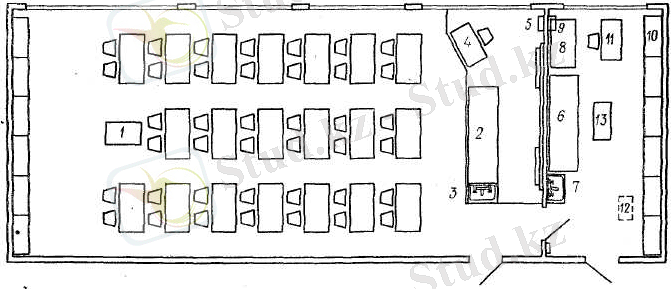 1 - сурет. Физика кабинетінің бір сынып-лабораториясының жоспары.