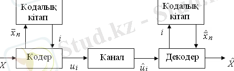 Төмендегі суретте кодалау және декодалау жалпы сұлбасы көрсетілген. Ақпарат жіберушіде кодалайтын құрылғыны - кодер, ал қабылдағышта декодалайтын - декодер деп атаймыз. Кодалық бірліктері кодалық кітапқа жазылып кодермен декодердің жадысында сақталынады. Кодалық кітапта