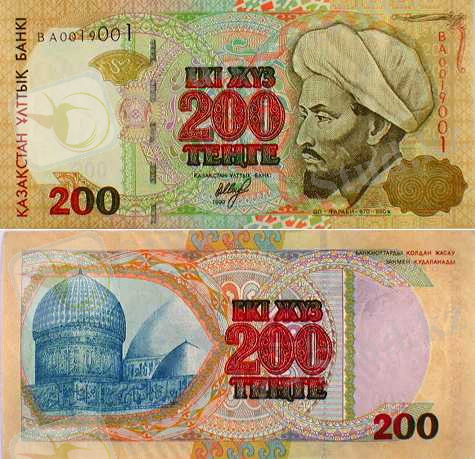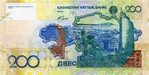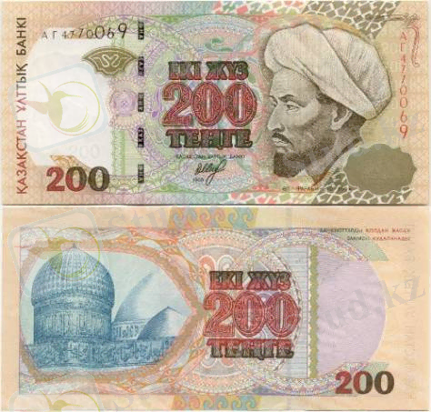 1999 жылғы үлгідегі номиналы 200 теңгелік банкнот.