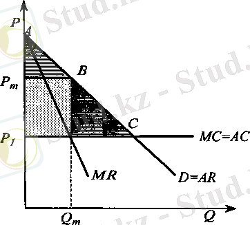 Бұдан монополистің пайдасы өндірістің шекті шығындары (МС) шекті түсімге (MR) тең болғанда ғана ең көп болатынын көреміз.