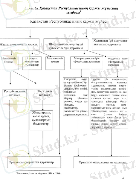 Бүгінде Қазақстанның қаржы жүйесі төменде келтірілген схемадағы қаржы қатынастарының біршама дербес мына сфераларынан тұрады: