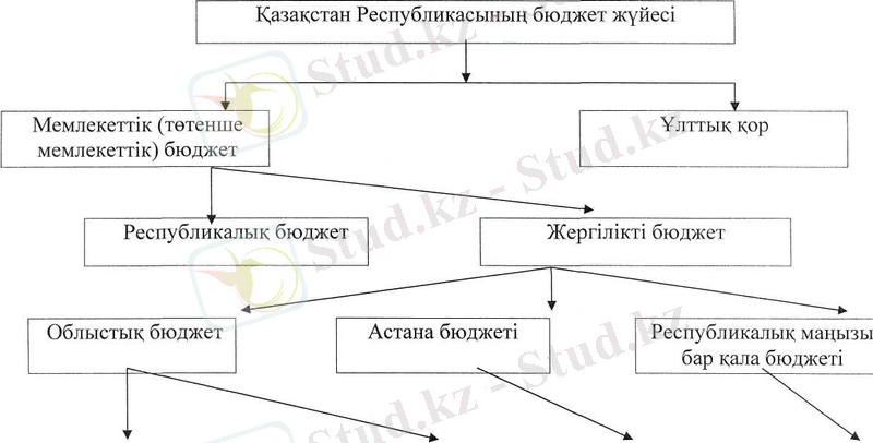 Қазақстан Республикасында жиынтығында мемлекеттік бюджетті құрайтын бекітілетін, атқарылатын және дербес болып табылатын мынадай бюджеттер жұмыс істейді (№2 сызбаны қараңыз) :