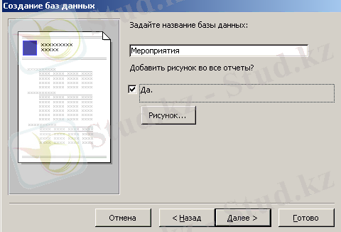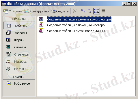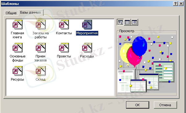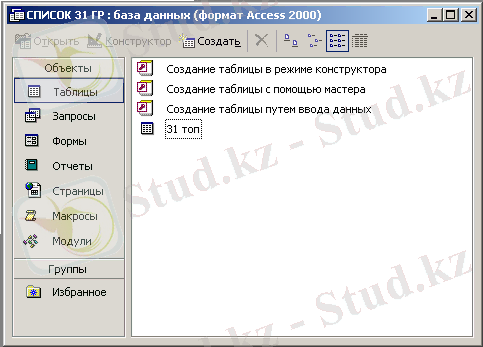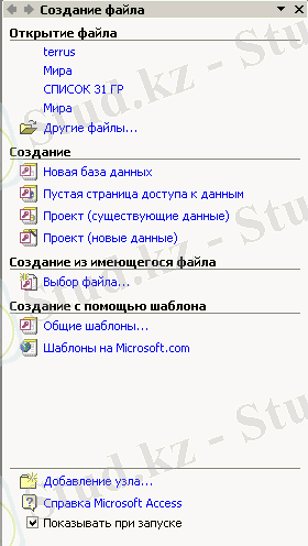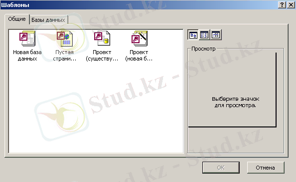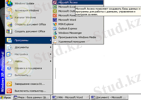 (сурет 1) командасы қолданылады. MS Access-ке маус батырмасын басамыз Осы кезде экранда 2-суретте көрсетілгендей MS Access-ті шақыру терезесі пайда болады.