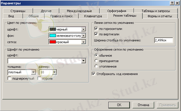 - Бүкіл кестедегі немесе тек таңдап алынған жазулар мен өрістерді әртүрлі