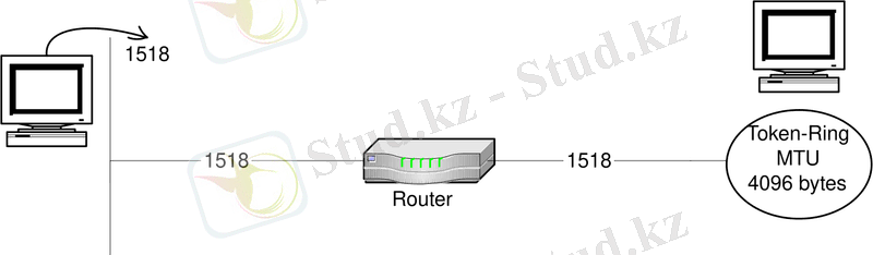1. 1-суретінің мысалында үзінділеу қалай өтетінін қарастырайық. Ethernet сегментіндегі хост А, Token-Ring сегментіндегі хост В 1Мб мәлімет жіберейін деп тұр. Ethernet сегментінде кадрдың максималды ұзындығы (MTU - Maximum Transmission Unit) 1518 байт, ал Token-Ring сегментінде MTU 4096 байтқа тең. Мәлімет аралық құрылғы бағдарғылауыш арқылы тасымалданады. Барлық хабарлар бір датаграммамен тасымалдана алмайтыны анық көрініп тұр. Сондықтан мәліметті IP хаттамасы арқылы үзіділеп, әрбір үзідіге жіберуші мен қабылдаушы жайында мәліметті қыстырып, торап арқылы тасымалдау үшін кадрларға салу керек. Үзінді ұзындығы хост жіберуші тұрған торап сегментінің MTU ұзындығынан аспау тиіс. Осы жергілікті торапта (Ethernet) бұл ұзындық 1518 байт.