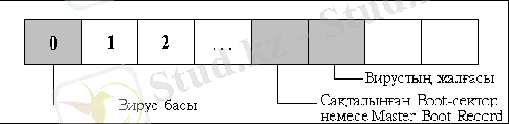 - Операциялық жүйенің жүктеуіші мен қатты дискінің ең басты мәлімет жүктеу жазбасы. Бұл аумақтарды зақымдайтын вирустар"жүктегіш"( загрузочная ) немесеBoot -вирустар деп аталады.