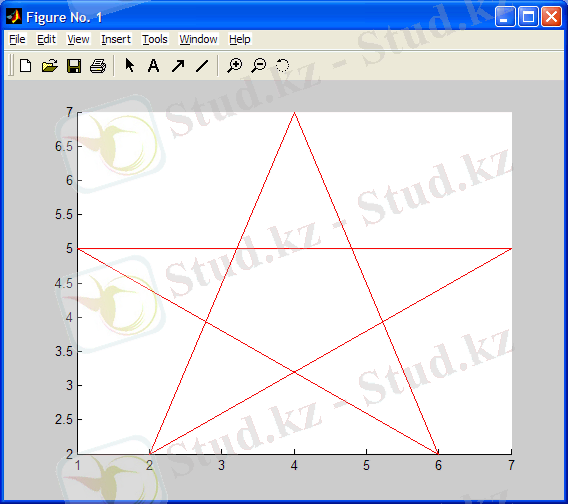 >>line([2, 4, 6, 1, 7, 2], [2, 7, 2, 5, 5, 2], 'Color', 'red')