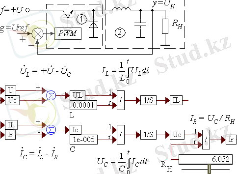 Түрлендіргіш широтно - импулсті модуляциясыменмен DCDC түрлендіруші төмендетуші класына жатады. Кіріс күштену өзгеруін +U ашуландырушы деп қарастыруға болады . Жүкті тиеуді Rн алмастыруға болады, сондықтан жүйені параметрлік деп есептеуге болады .