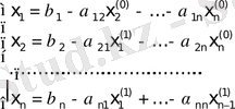 Итерация әдісімен теңдеудің шешімін табу үшін берілген теңдеулер жүйесін мына түрге түрлендіреміз.