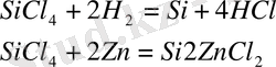 Cутекпен немесе мырышпен кремний тетрахлоридін тотықсыздындадыру (барынша таза кремний түзіледі) :
