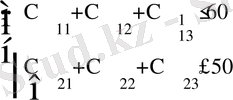Шешуі: і - ші жабдықтаушыдан j - ші тұтынушыға жеткізілетін жүк мөлшерін х ij ≥0 (i=1, 2) ; (j=1, 2, 3) деп белгілеп, алты айнымалы енгізіп, келесі математикалық модельді аламыз: