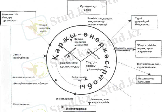 Инвестициялық белсенділікті күшейту мәселесі қаржы ағымдарын қалыптастыру және пайдалануды оңтайландырумен тығыз байланысты. Бұл міндеттің бірнеше ұйымдық шешімі бар. Олардың бірқатары Қазақстан экономикасының құрылымында өз орындарын енді тапты: бұл консорциумдар, корпорациялар, концермдер, ассоциациялар, инвестициялық-қаржы компаниялары мен қорлар, қаржы одақтары, сауда-өнеркәсіптік және банкілік бірлестіктер. Қазақстан үшін болашақты ұйымдық нысан қаржы-өнеркәсіптік топтарды құру болып табылады. Нақ осылар экономиканың құрылымдық қайта құрылуын жандандыру мен олардың тиімділігін арттырудың елеулі резевтеріне ие. Басқа елдердің тәжірибесі көрсеткендей, біріктірілген корпорациялық құрылымдар, атап айтқанда, қаржы-өнеркәсіптік топтар өнеркәсіпке инвестицияларды ынталандырудың тиімді нұсқаларының бірі болып табылады.
