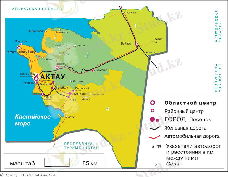 Сурет 1. Маңғыстау облысының әкімшілік-аумақтық бөлінуі