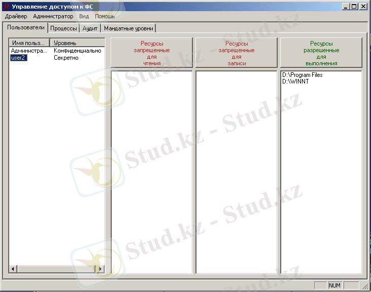 Ескерту. Қорларға қатынас құрудың мандатты механизмі секілді қарастырылған механизм толық емес, оған қосымша дискреттік механизм қолданылуы қажет, ол файлдық объектілерге қолданушылар қатынауын шектейді.