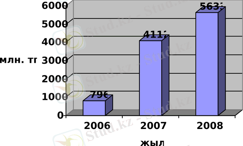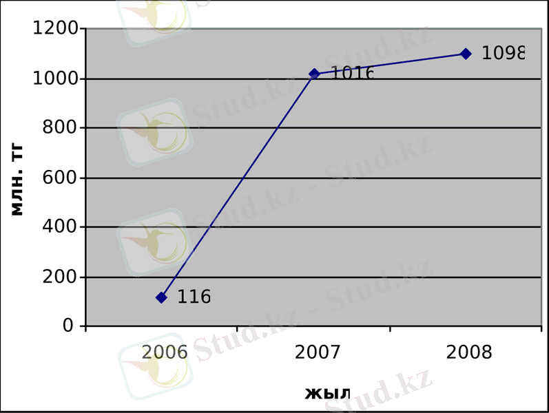 Өнім өндірістері көлемдердің артуы өнім сатудан түсетін пайданың артуына әкеледі, тауарлардың, жұмыстардың, қызметтердің 2006-2008 жылдың арасында 1098 млн-ға пайданың өсу шегі 2- суреттен көруге болады.