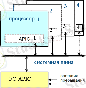 1 сурет. салынған APIC және I/O APIC жүйелік шина бойынша арақатынас
