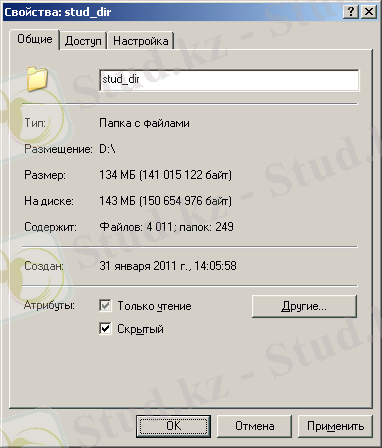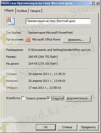 сурет 1. 1 Файлдар мен папкалар үшін “Жасырын” атрибутын орнату.