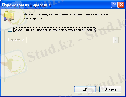 Деректерді қорғауға ерекше мән берілген жағдайда (Кэштеуге тыйым салуға болады, сурет 1. 7) . Әрине, арнайы шаралар қабылдамайынша бұл әдіс ақпарат қауіпсіздігін қамтамасыз етуге толық жауап бере алмайды (жалпы қатынас құру папкасынан басқа жұмыс станцияларының дискілеріне файлдарды көшіруден)