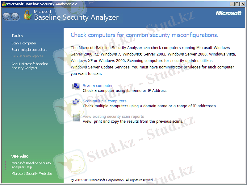 Сур 2. 2 Microsoft baseline security analyzer программасының терезесі