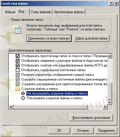 - Жасырын атрибутты файлдар мен папкаларды көрсетуге тыйым орнату (сурет 1. 2) ;