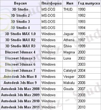 Autodesk 3ds max 2008-шi 2007 жылда жаңа түрі шықты, 2009-шы түрі шықты. Көкейкестi түрі Autodesk 3ds MAX 2011-шi(13. 0-шi индекс) атауды бүгінгі дейын көп қолданыста.