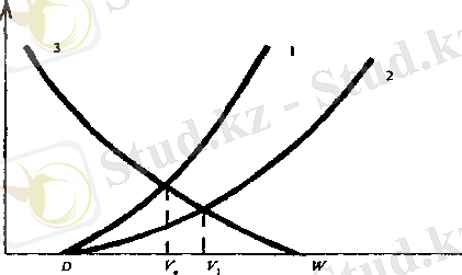 Сонымен қоса мұндай механизм қалдықтар бірлігіне салынатын салықтар туралы әңгіме қозғауға мүмкіндік бермейді. Қалдықтар бірлігінің орташа төлемі ретінде салықты санағанда U(V) /V, V 0 нүктесін анықтауға болады, себебі U(V) /V W (10. 3. сурет) шекті табиғатты қорғау шығындарымен сәйкес келмейді. Кәсіпкер үшін мұндай әдісте V 2 нүктесі аса тиімді болып табылады.