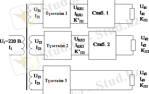 Желіден түскен белсенді қуат трансформаторда (Pтр), вентильде(Рв), тегістегіш фильтрде(Рф) және стабилизаторда(Рст) жоғалады.