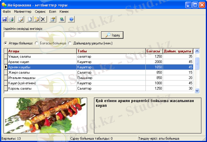 Мейрамхана мәзірін автоматтандыру: мәліметтер қорын жобалау және Delphi-де қолданба әзірлеу