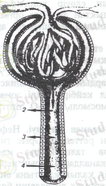 2 - сурет. Несеп жасалуды қамтамасыз ететін негізгі процестер: 1- шумақтағы түзілу, 2- каналшалардағы заттар реабсорбциясы, 3- нефрон қуысына немесе тамырға заттың клеткадан секрециясы және синтезі, 4- клетканың затты қаннан каналша қуысына секрециялауы.